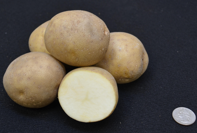 - Tubers: Uniform, smooth, round tubers with lightly netted, tan colored skin. Tubers have a white flesh with a low incidence of internal defects.