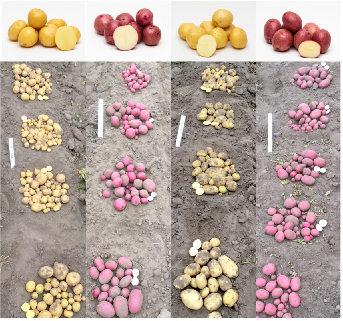 The four TPS varieties registered in order pictured: TT-11-088, TT-11-017, TT-10-024 & TT-11-018. Photo: Tuberosum Technologies & Chloe Tews.