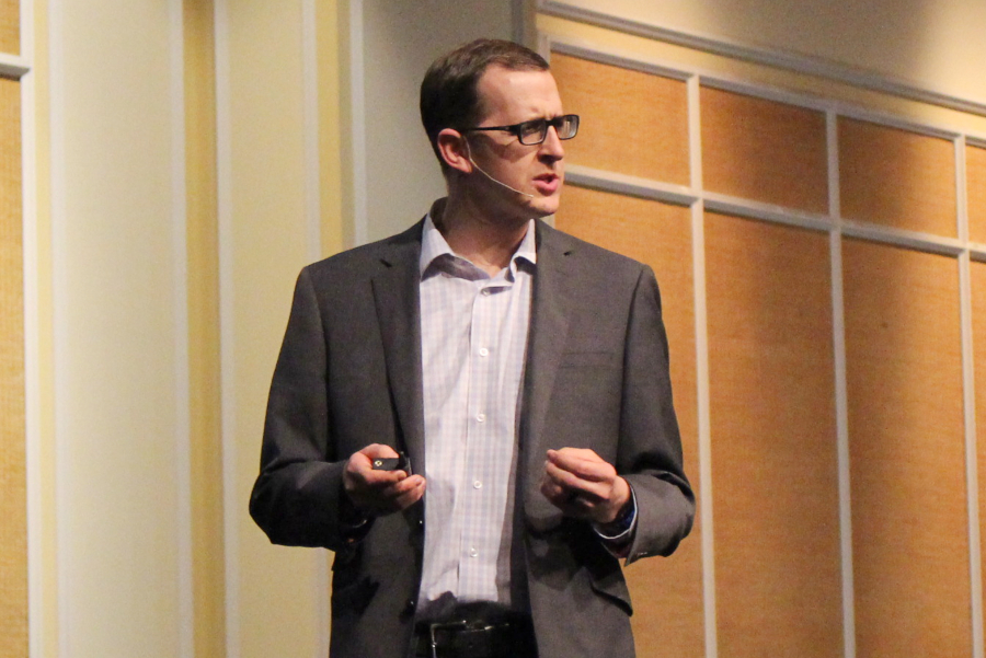 Top photo: Andy Robinson, Extension Agronomist and Professor at North Dakota State University, speaks on identifying herbicide damage during Potato Expo 2020.