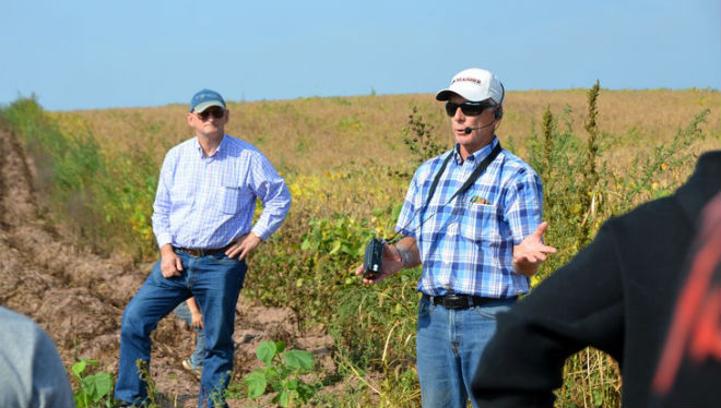 Top photo: Keith Masser (right), chairman and CEO of Sterman Masser Potato Farms, talks to Penn State agribusiness management students as Rick Roush, dean of the College of Agricultural Sciences, looks on. Photo: Sarah Giegerich