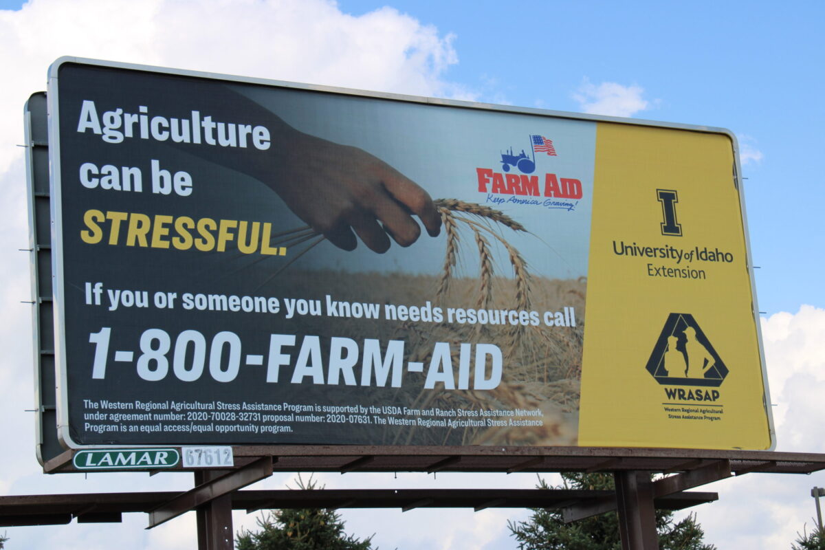 Furthermore, UI Extension is posting billboards throughout the state — four in northern Idaho and six in the state’s southern, central and eastern regions — directing farmers and ranchers who are overwhelmed by stress to Farm Aid and the Farm Crisis Center. The billboards, which will remain posted throughout the fall, read: “Agriculture can be stressful. If you or someone you know needs resources call 1-800-FARM-AID.”